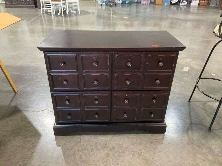 Dark Stain Drawer File Cabinet with Faux Apothecary Front - Hash Auctions