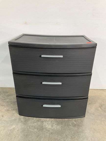 Three-Drawer Sterilite Black Plastic Storage Unit with Curved Front ...
