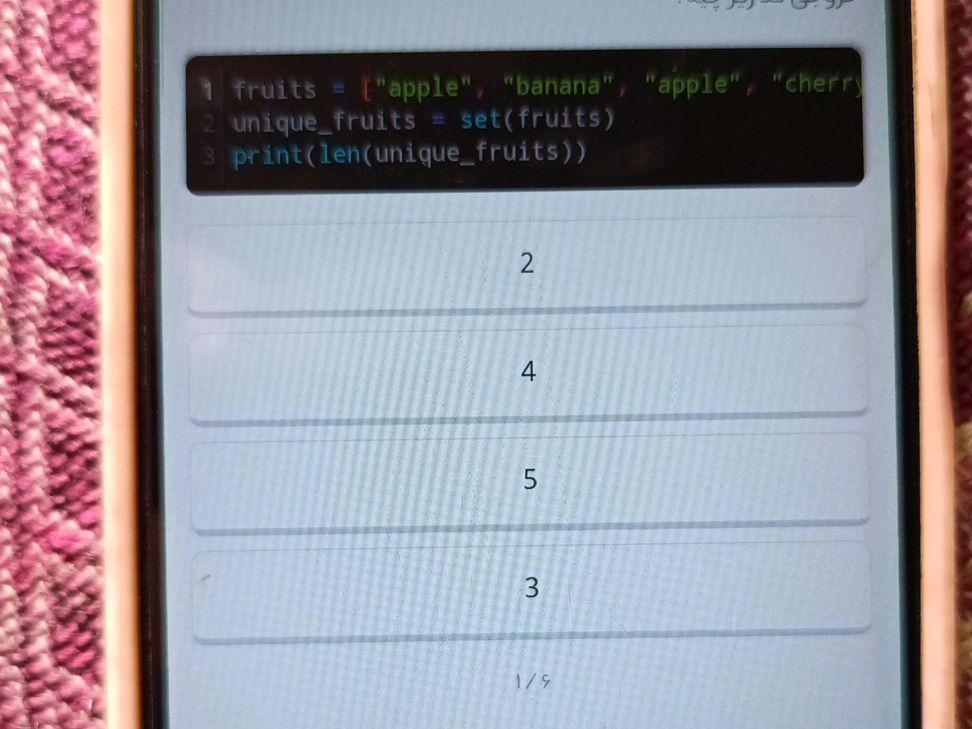 Solved PYTHON What is the output of this code? fruits = "7" | Chegg.com
