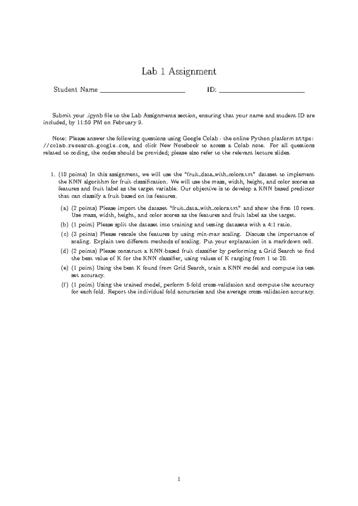 Lab 1 Assignment: KNN Fruit Classification in Python - Studocu