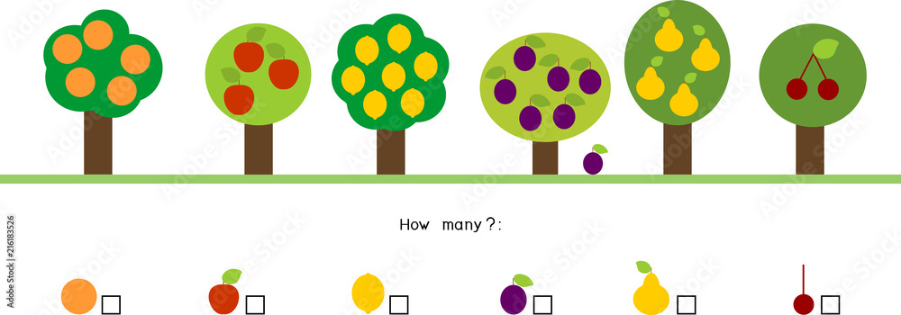 How many different fruits on trees. Counting educational game with ...