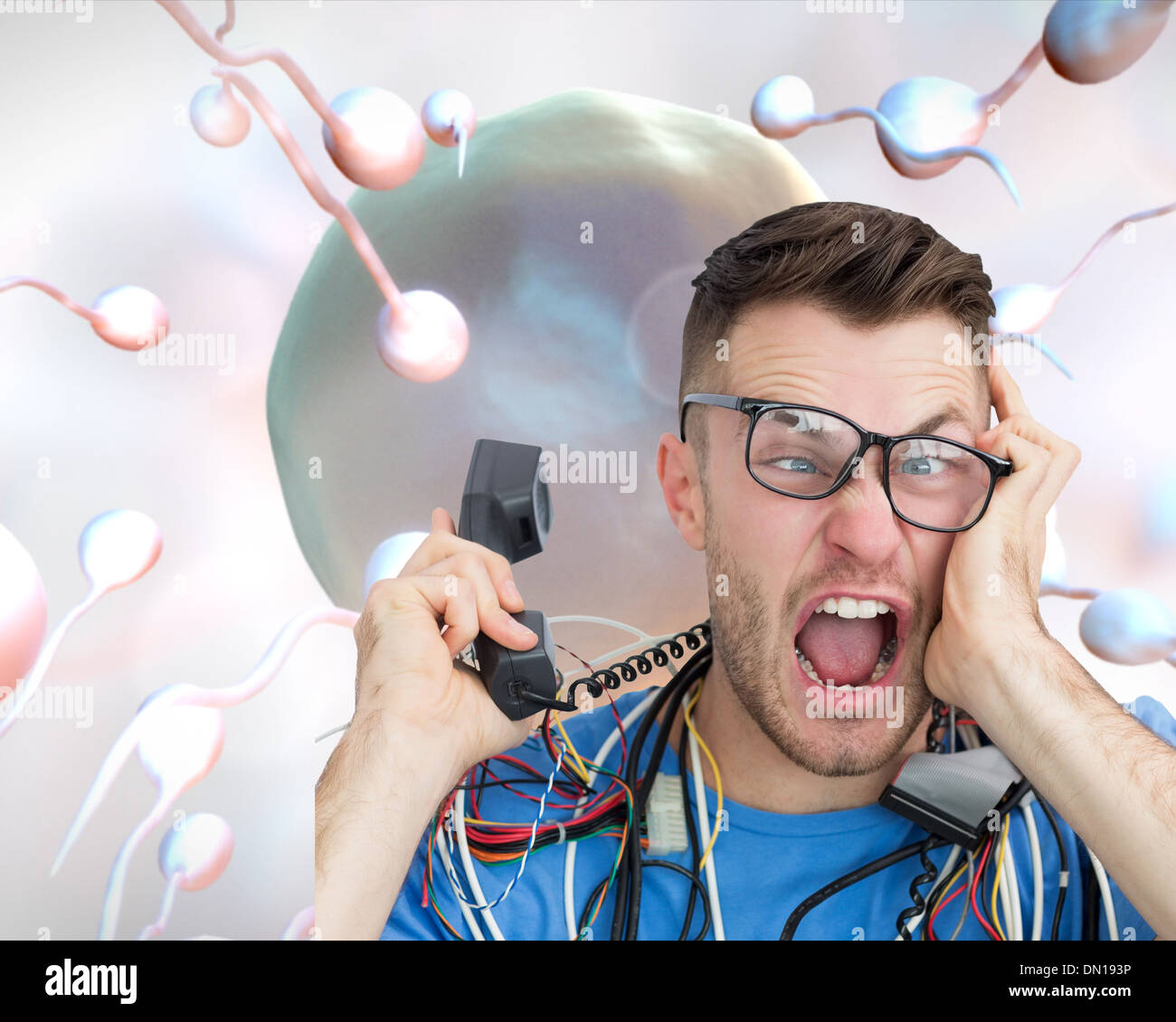 Frustrated computer engineer screaming while on call Stock Photo - Alamy