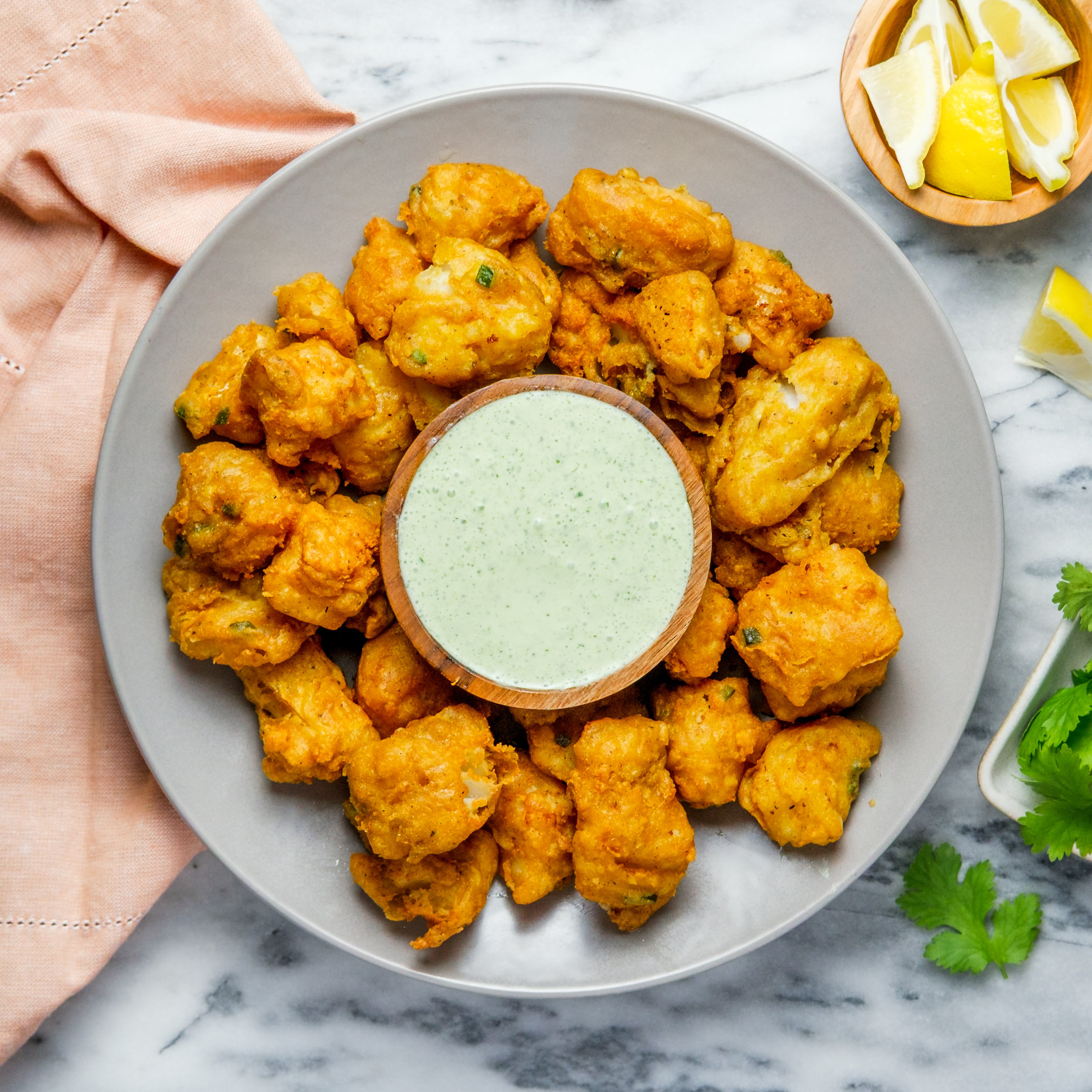 Indian Fried Fish Fritters (Pakora) with Cilantro-Yogurt Chutney | Shaw's