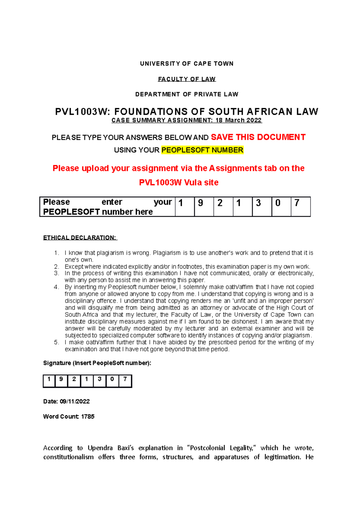 FSAL essay - UNIVERSITY OF CAPE TOWN FACULTY OF LAW DEPARTMENT OF ...