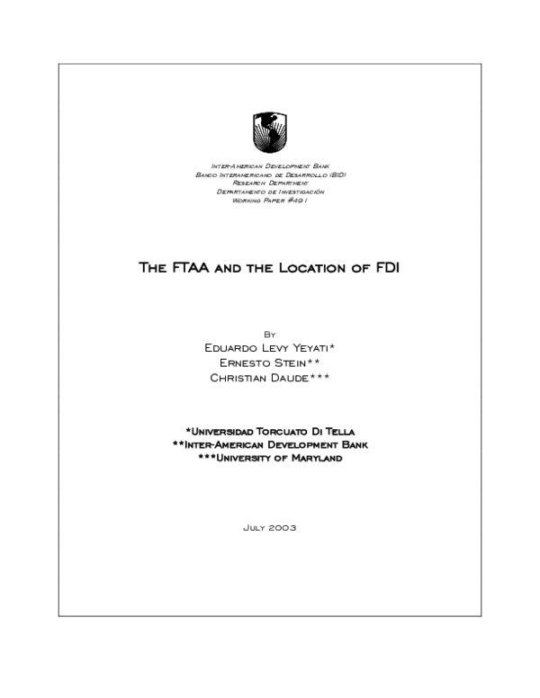 The Free Trade Area of The Americas (FTAA) and The Location of Foreign ...