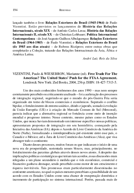 (PDF) Free Trade For The Americas? The United States' Push for the FTAA ...