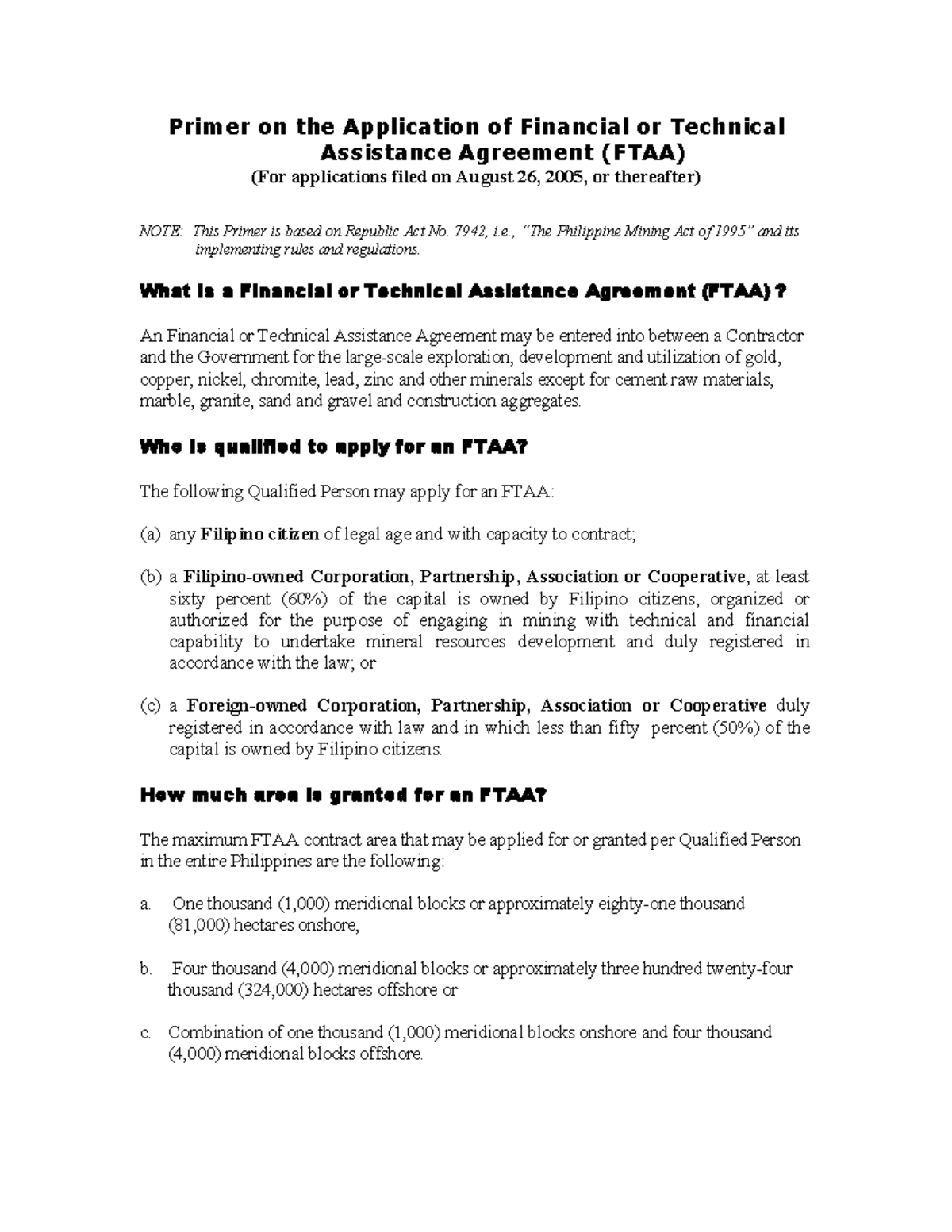Primer on Financial Technical Assistance Agreement (FTAA) - Studocu