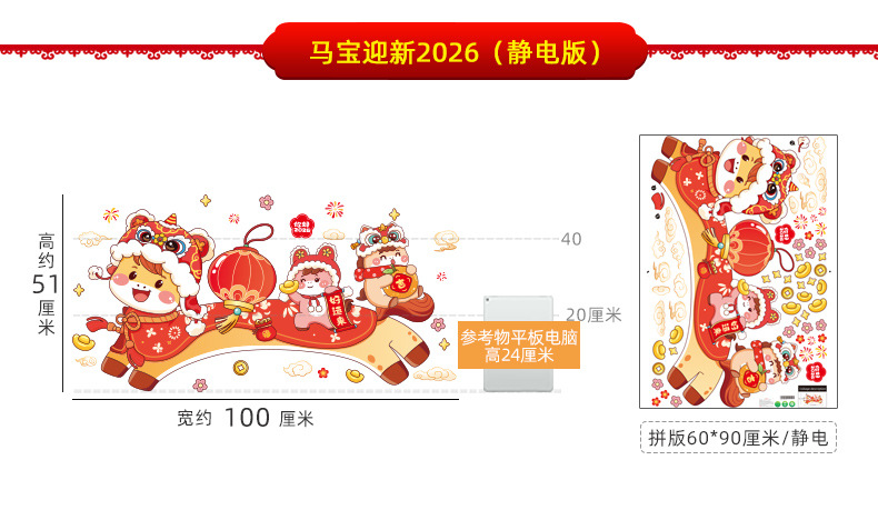 2026新款马年新年玻璃橱窗贴纸春节装饰过年元旦氛围布置窗花贴画-阿里巴巴