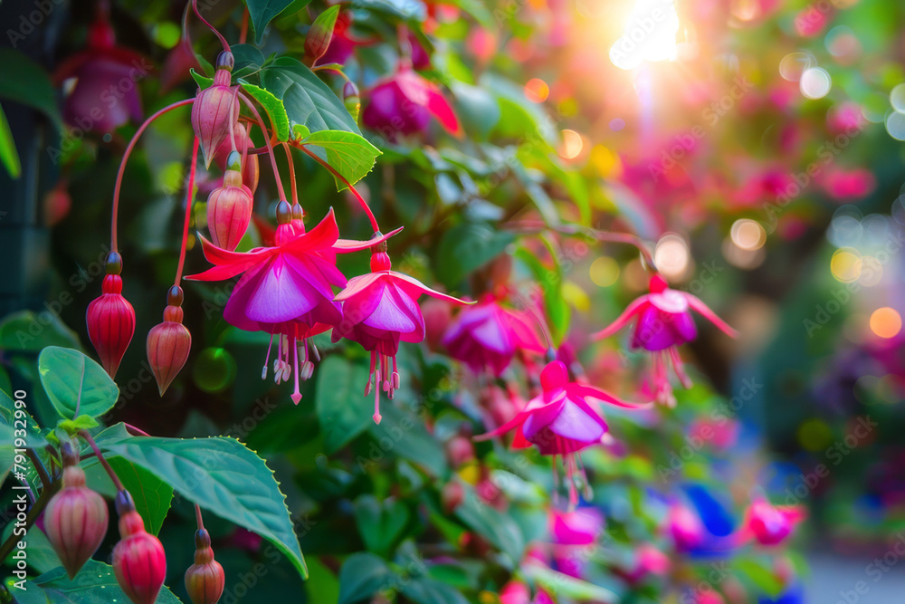 The splendor of fuchsia flowers in a garden setting, focusing on how ...