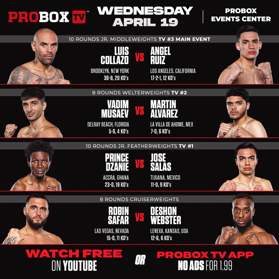 ProBox TV on Twitter: "LUIS COLLAZO VS ANGEL RUIZ 👊 LIVE AT 8PM 🕗 ...