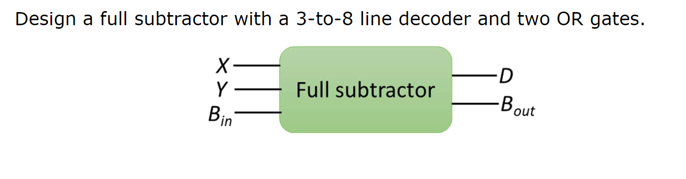 Solved Design a full subtractor with a 3-to-8 line decoder | Chegg.com