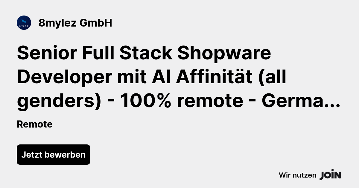 8mylez (Remote): Senior Full Stack Shopware Developer mit AI Affinität ...
