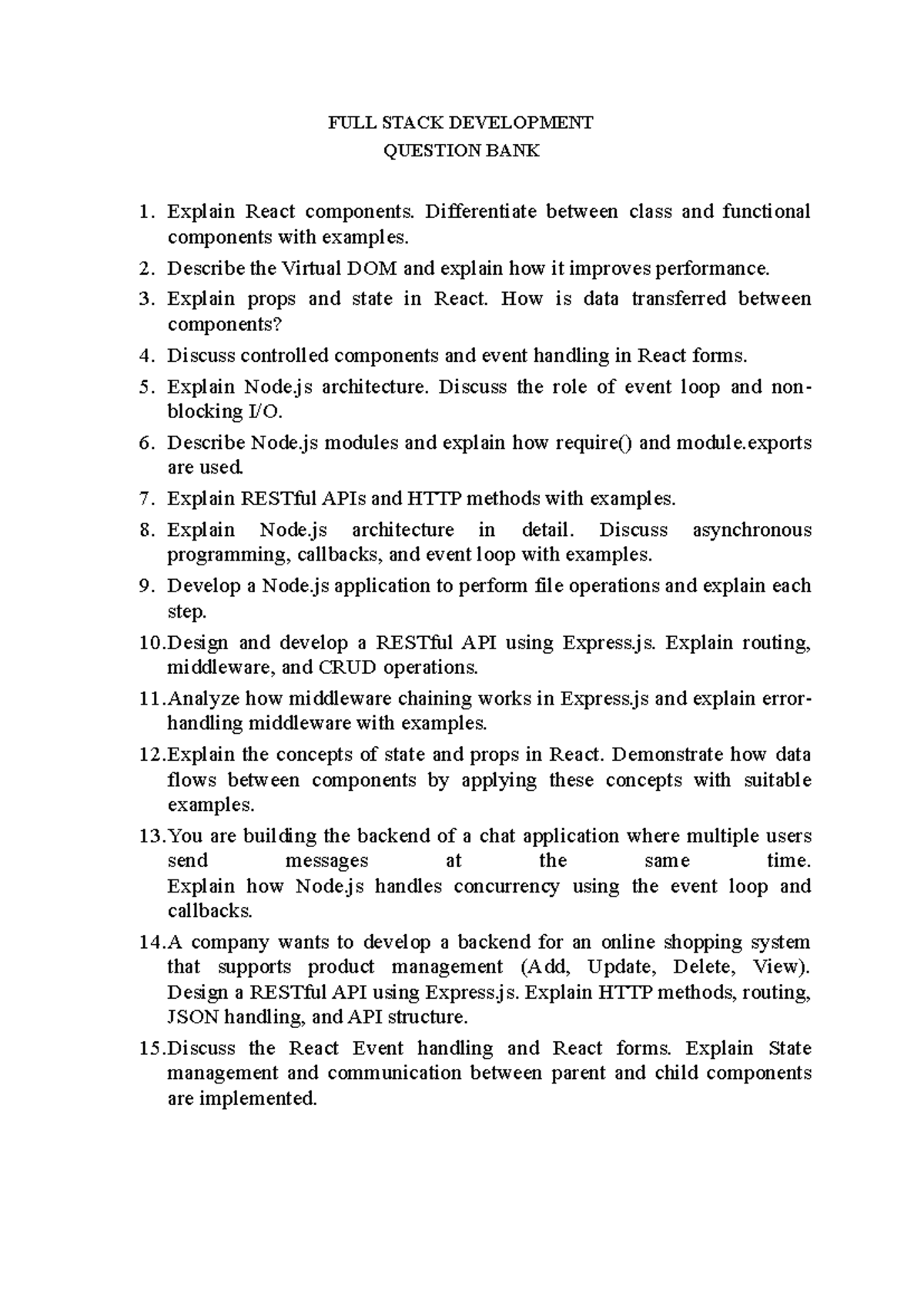 FSD Question Bank: Full Stack Development Concepts Explained - Studocu