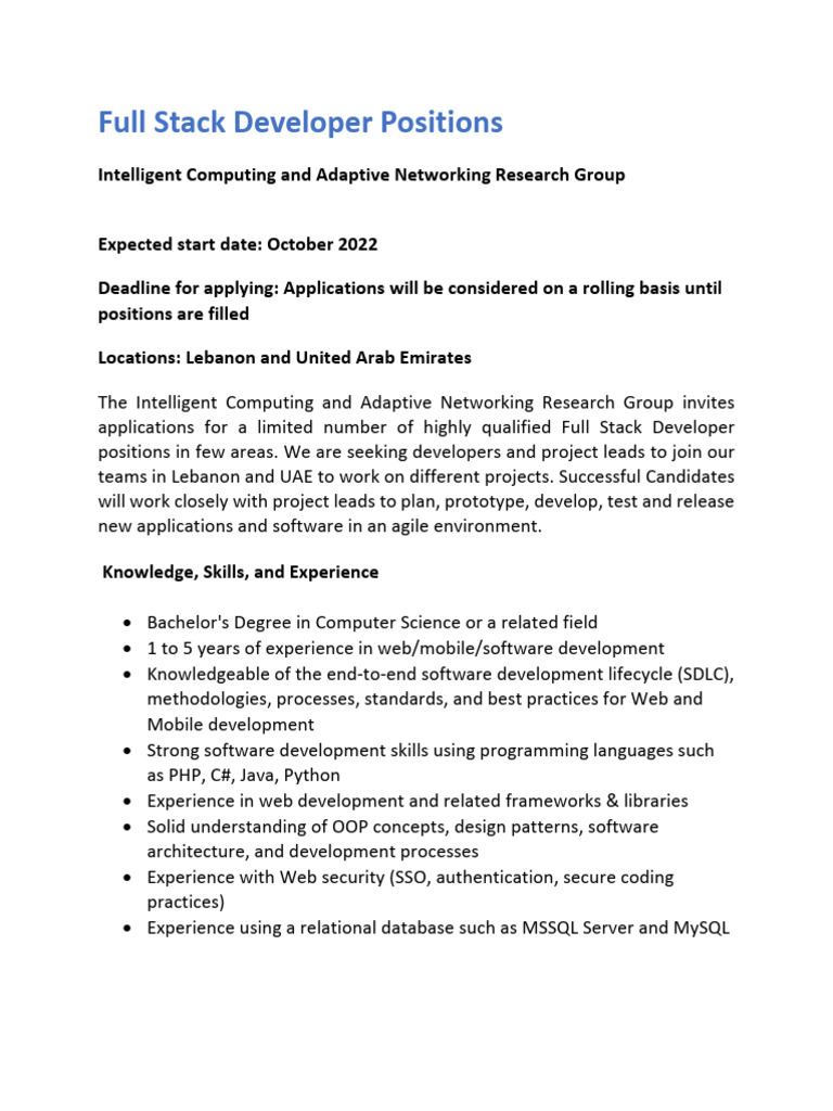 Final Full Stack Developer Positions | PDF | Software Development | Web ...