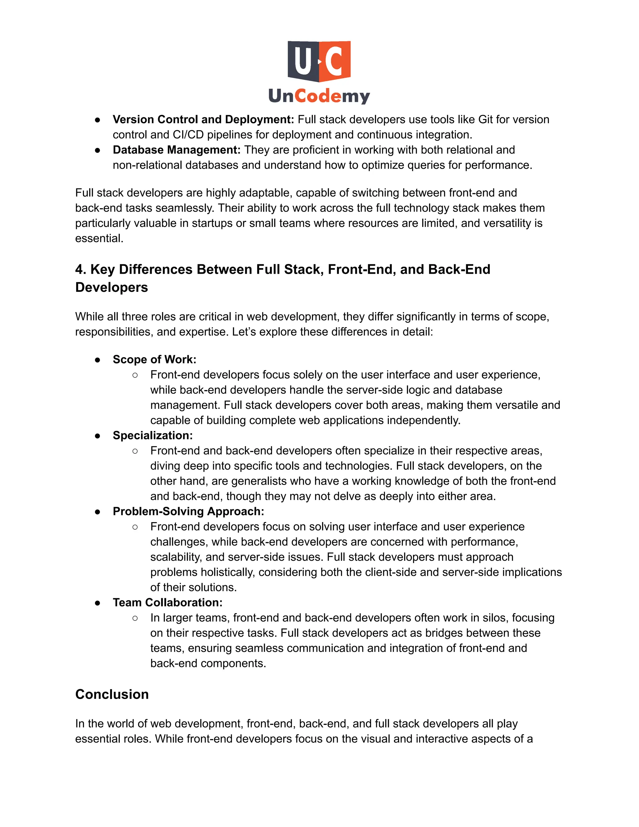 A Full Stack Developer is skilled in both front-end and back-end ...