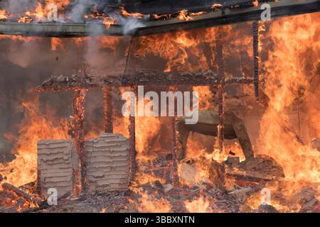 Flames inside a fully involved structure fire Stock Photo - Alamy