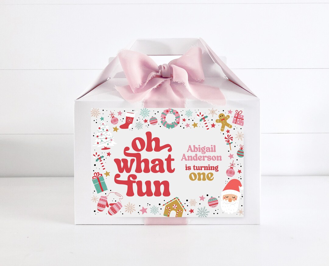 Oh What Fun Christmas Treat Box Label Template, Red and Pink Christmas ...