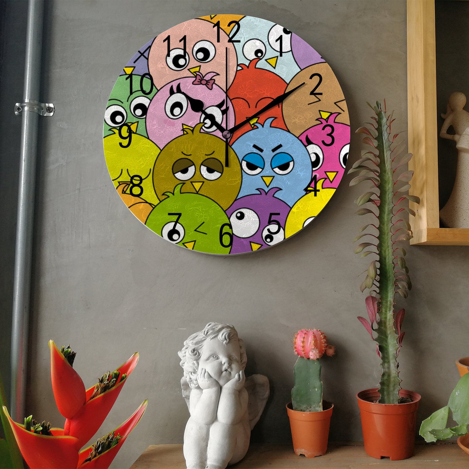 Funny Birds Round Wall Clock 10 Inch, Silent Non Ticking Wall Clocks ...