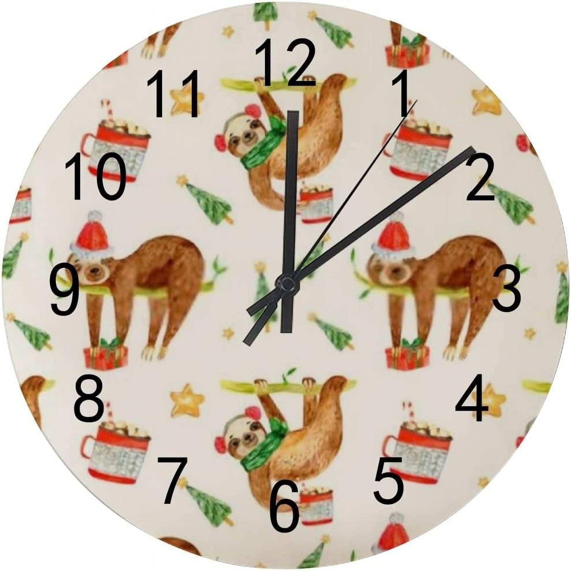 SKYSONIC Silent Wooden Round Wall Clock Funny Sloths Green Christmas ...