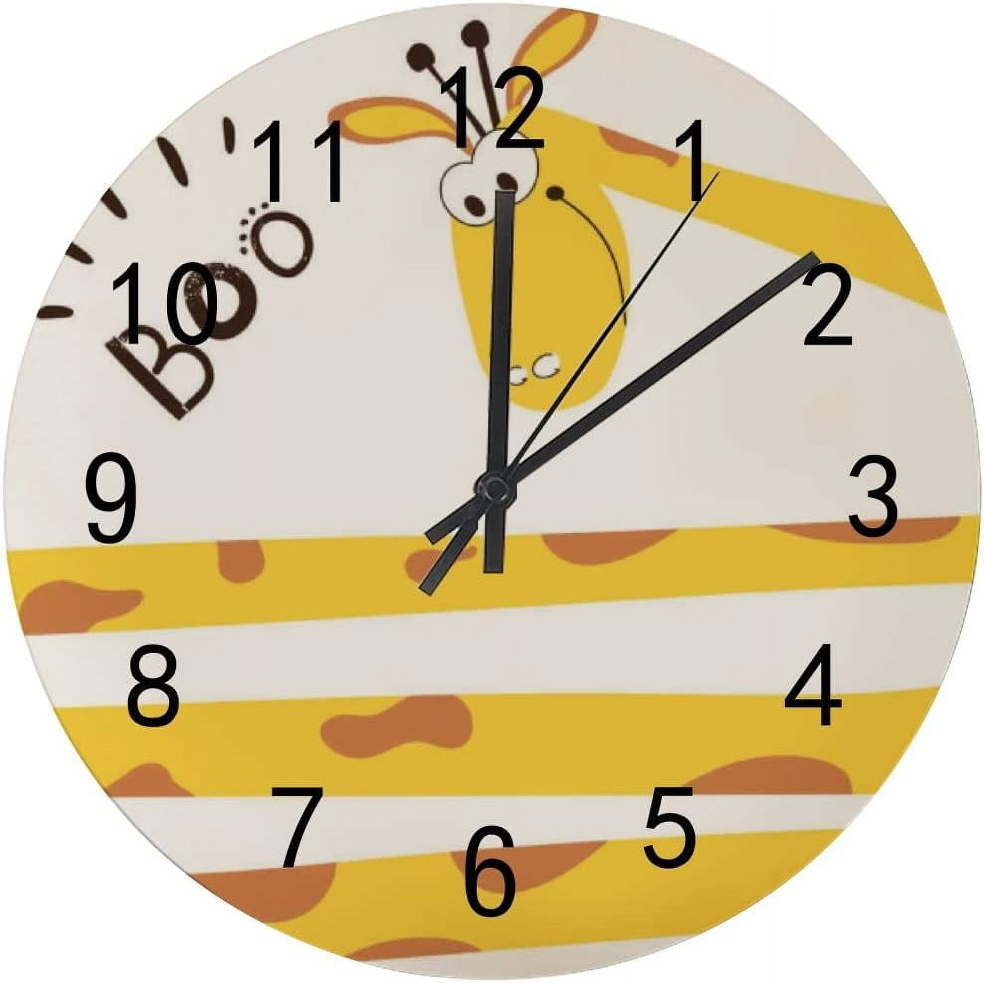 SKYSONIC Wooden Round Wall Clock Funny Giraffe Non Ticking Battery ...