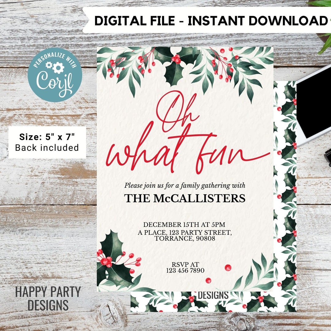Editable Oh What Fun Party Invitation | Christmas Family Party ...
