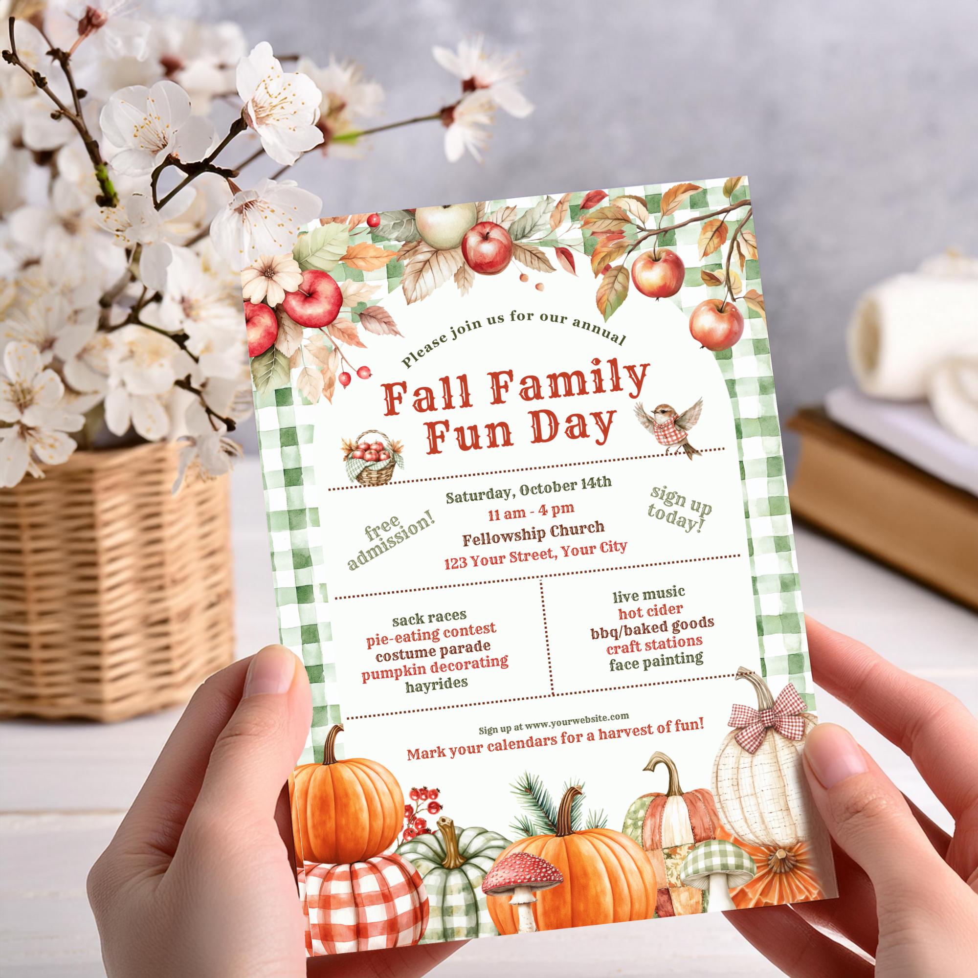 Fall Family Fun Day Invitation, Autumn Celebration Flyer, Editable ...
