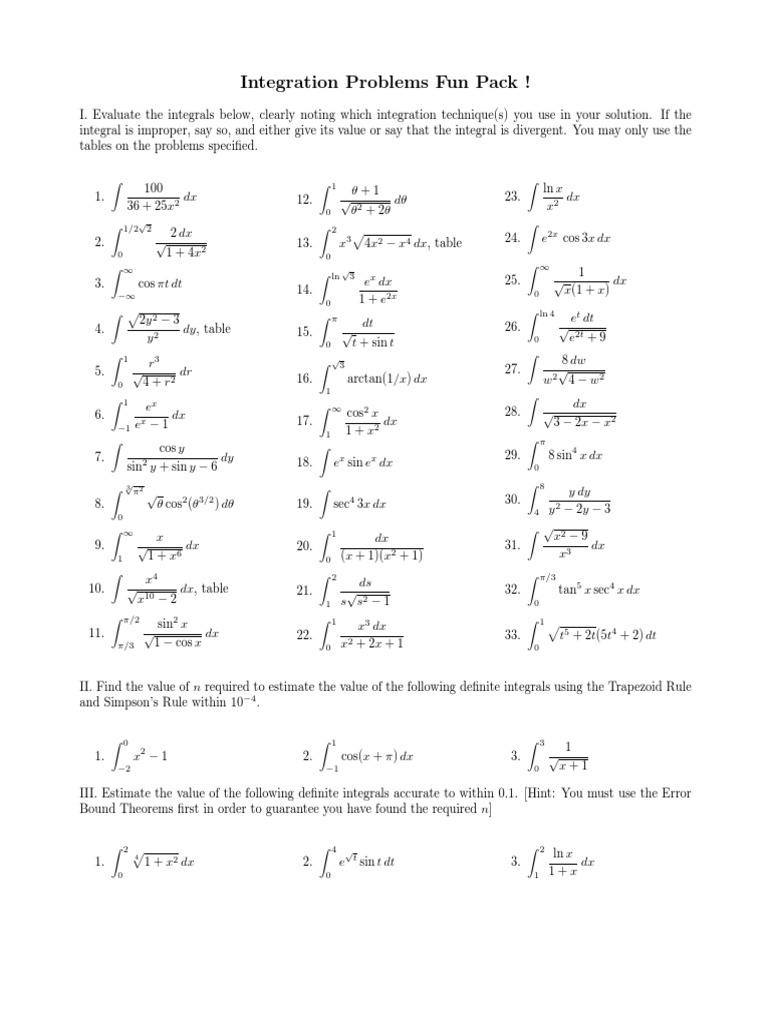 Integration Problems - .... - Practice Integration Problems MATH 182 ...
