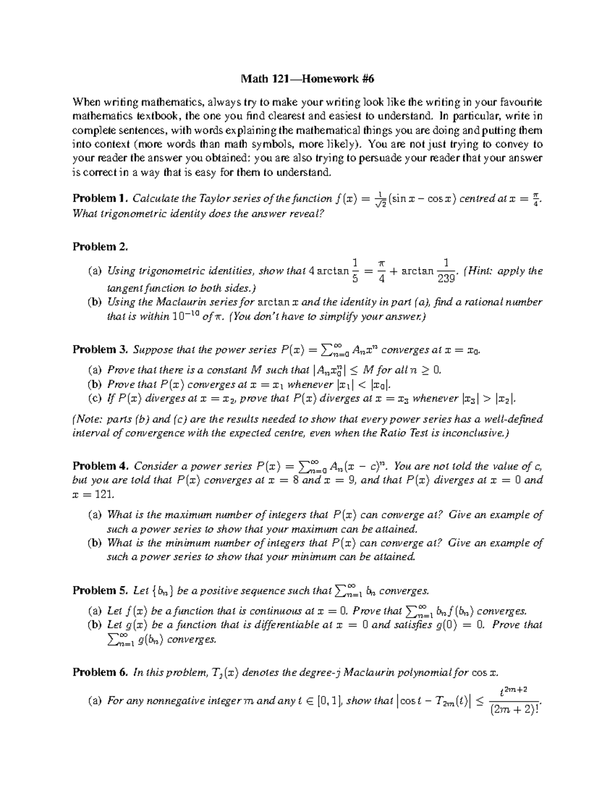 Math 101: Homework 6 - Series and Convergence Problems - Studocu