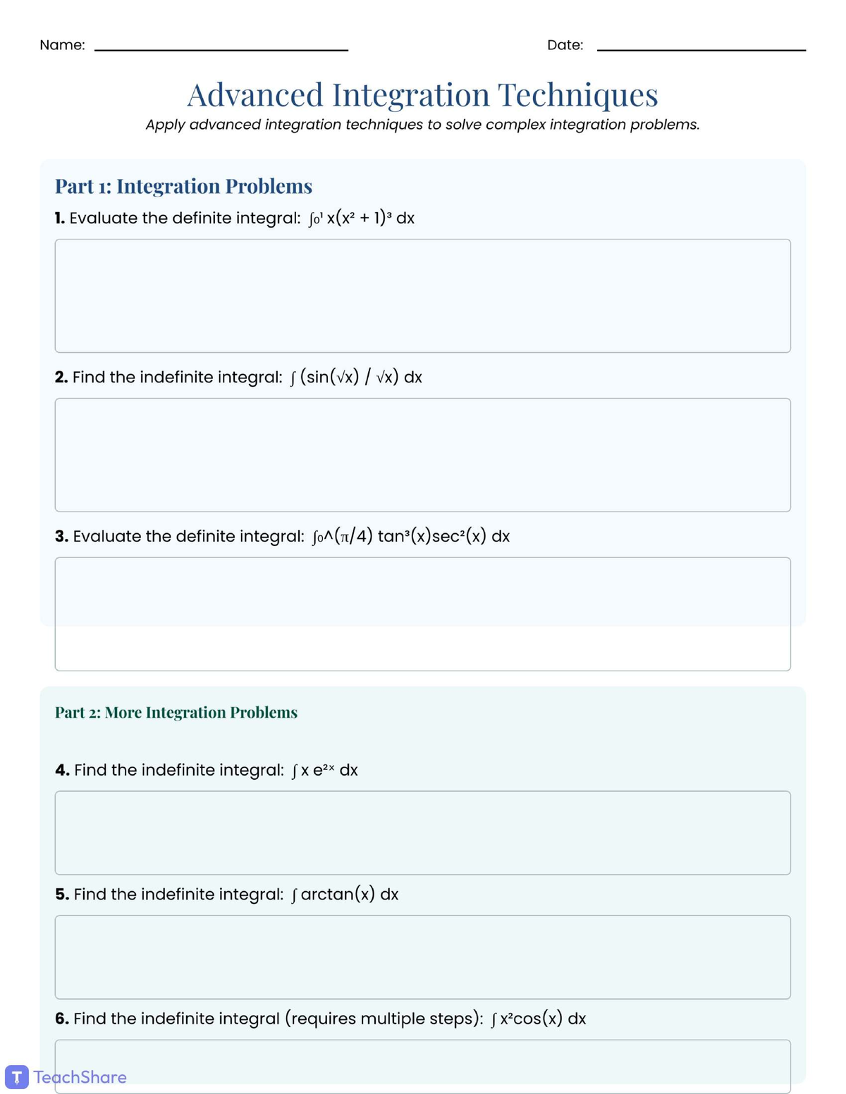 Indefinite Integrals 20 Questions & Solutions - Calculus 2 Printable ...