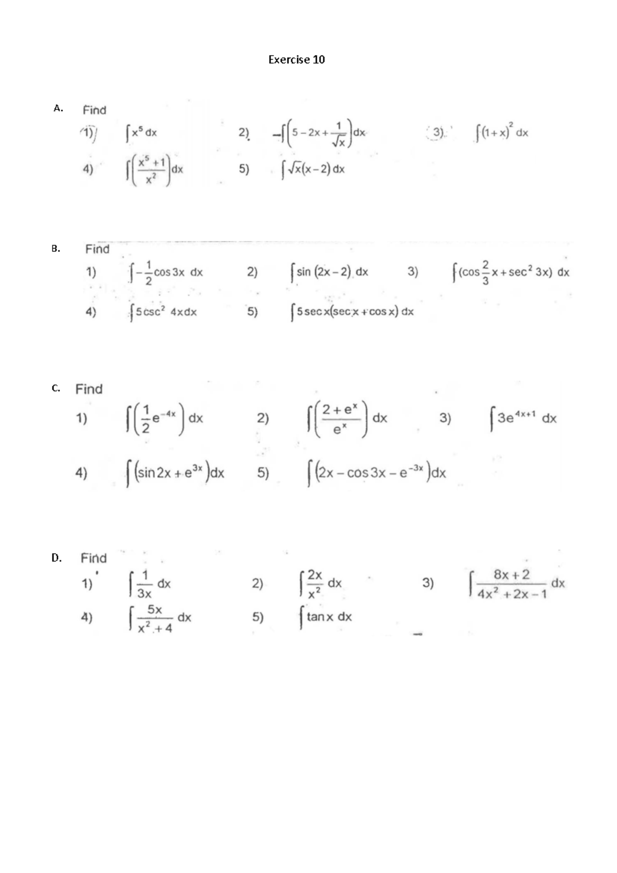 Calculus Exercise 10: Integration Problems and Solutions - Studocu