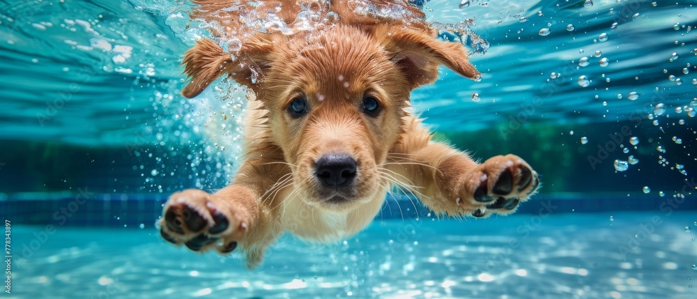 Premium Photo | Underwater photo of golden labrador retriever puppy in ...