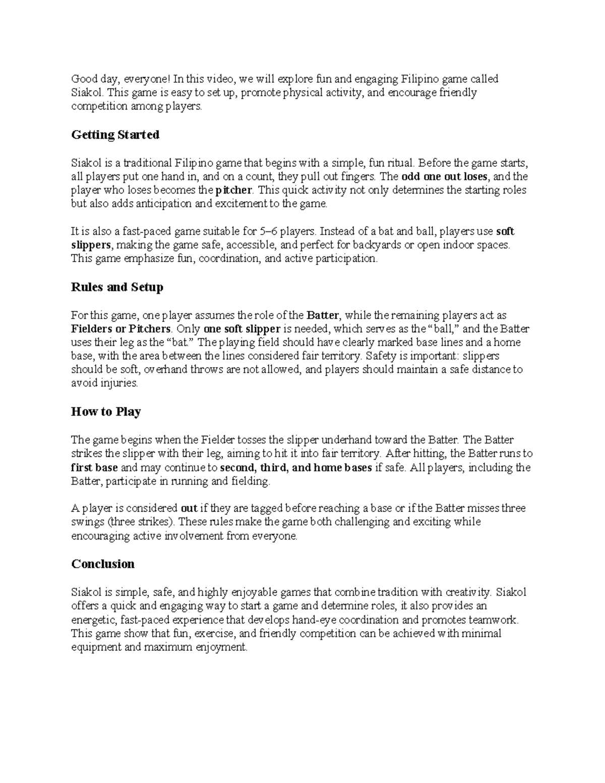 Siakol Game Mechanics: Notes for Filipino Subject - Studocu