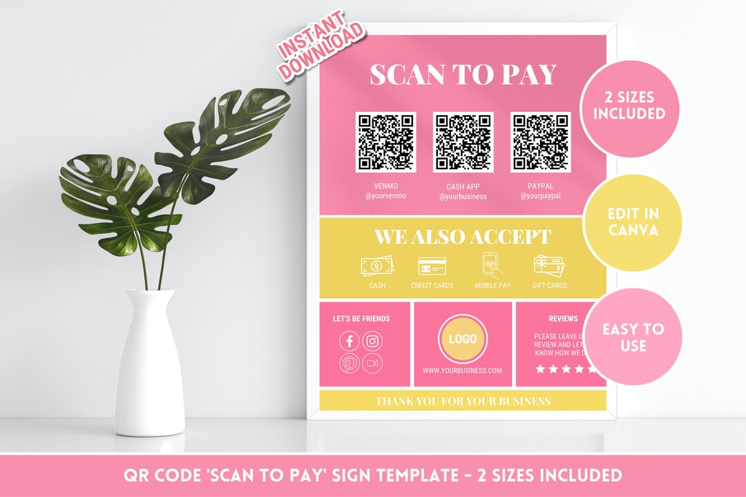 Color POP Scan to Pay Sign QR Code Sign Canva Template - Etsy