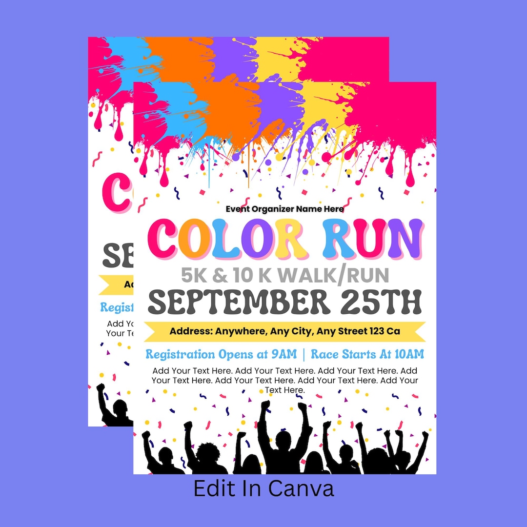 EDITABLE Color Run Flyer/poster Printable Invitation - Etsy UK