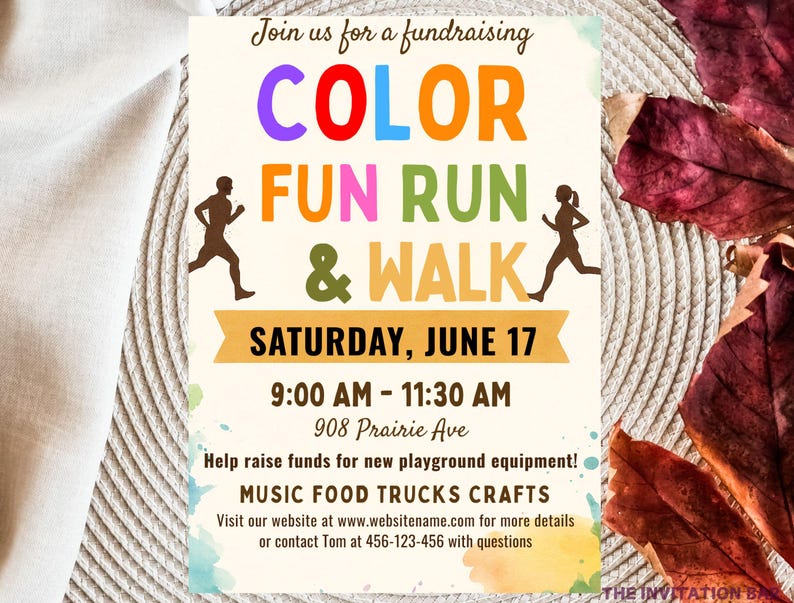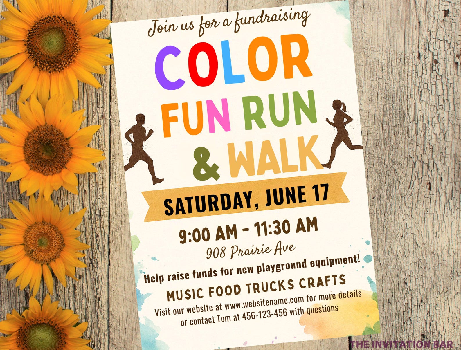 Color Run Invitation Digital Flyer School Fundraiser Flyer Printable ...