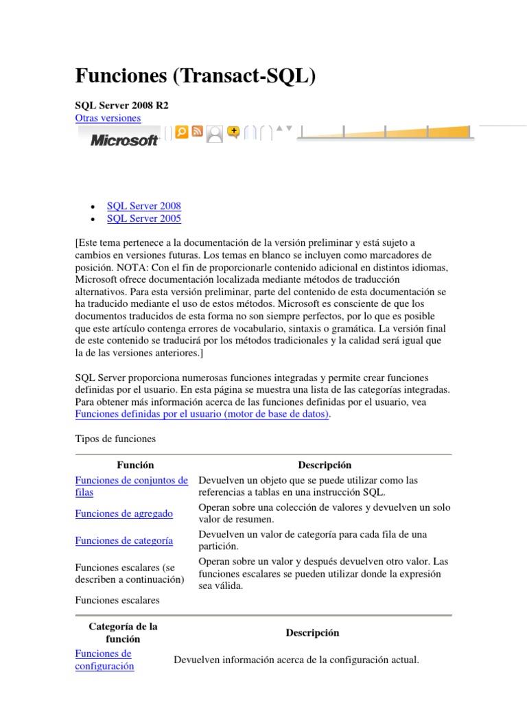 Funciones en SQL Server | PDF | Servidor SQL de Microsoft | Cadena ...
