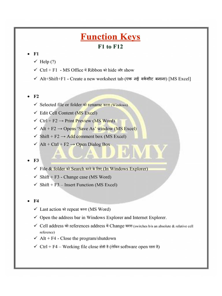 Function Keys Of Ms Excel at Faith Sager blog