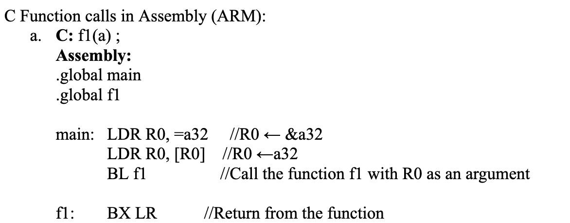 Solved Function calls in Assembly (ARM): a. C: fl(a); | Chegg.com