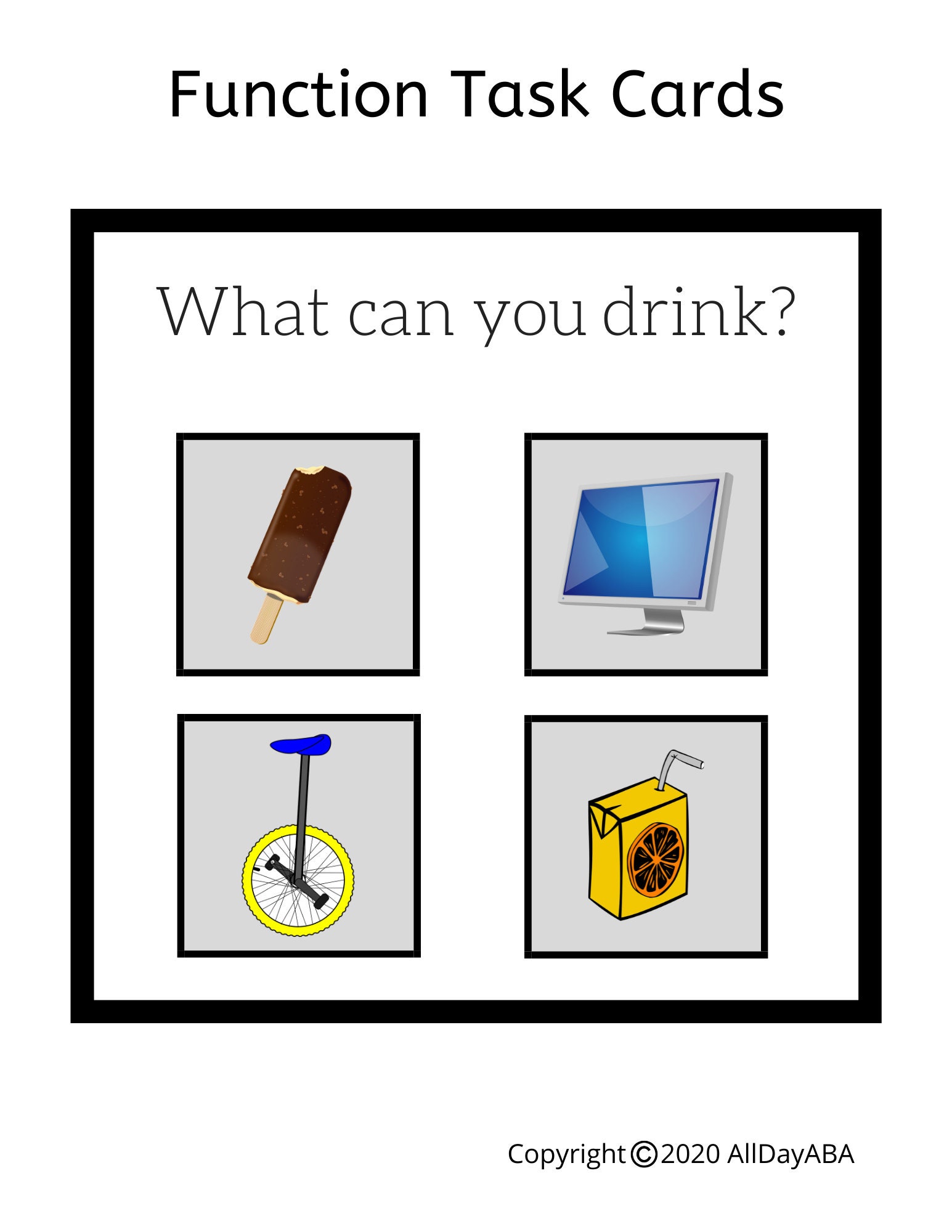 Object Function Task Cards | Task cards, Speech therapy materials, Cards