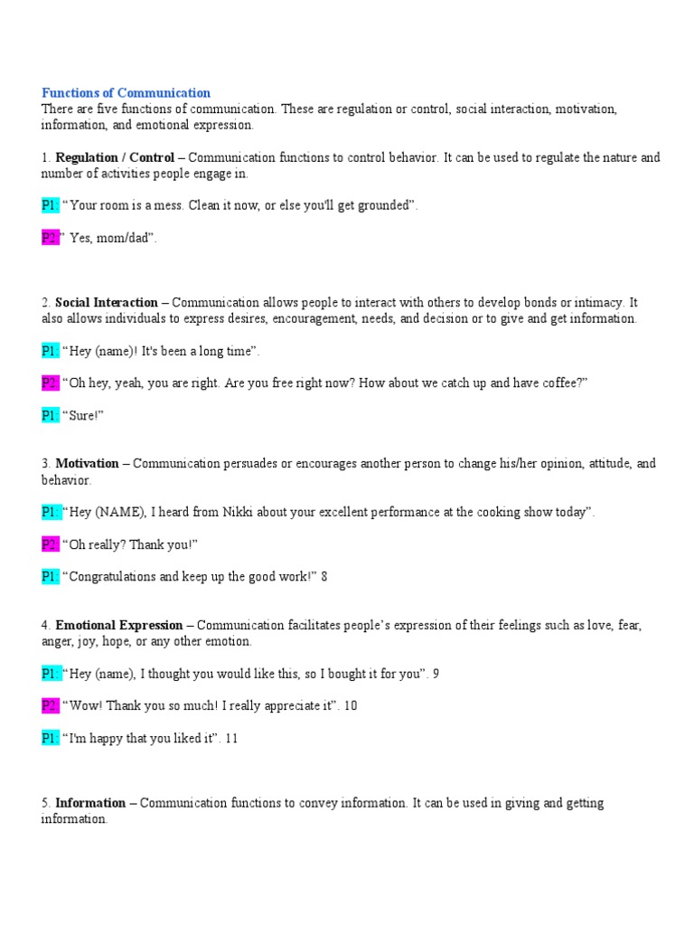 Functions of Communication and Examples | PDF