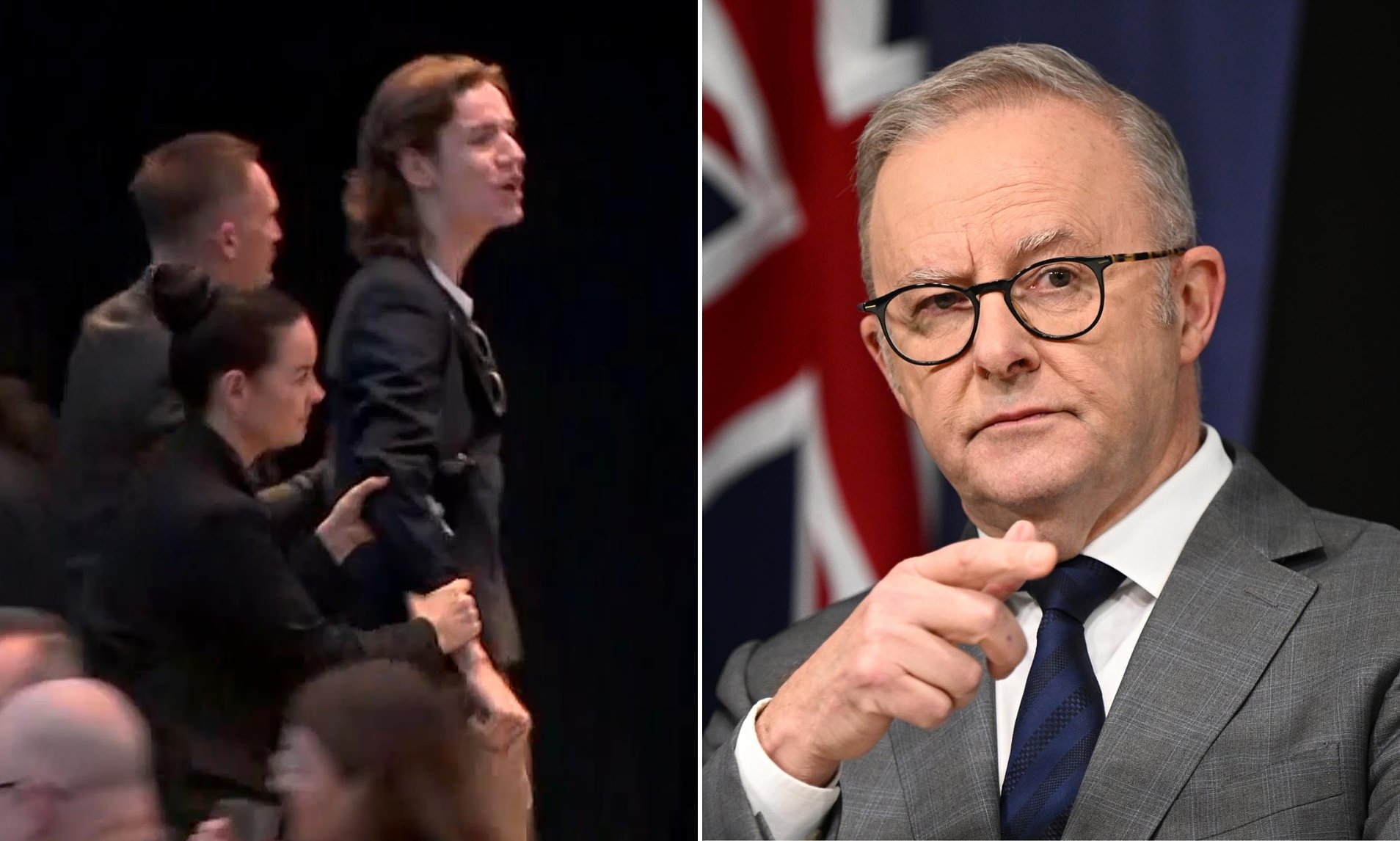 Wild moment protesters gatecrash breakfast function attended by Anthony ...