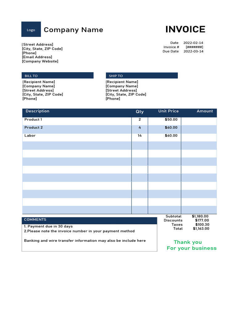 Part 1 – Create a Sales Invoice Template in Excel Using Simple ...