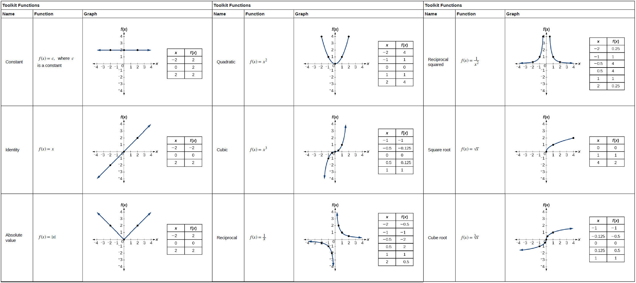 Graphing the Basic Functions