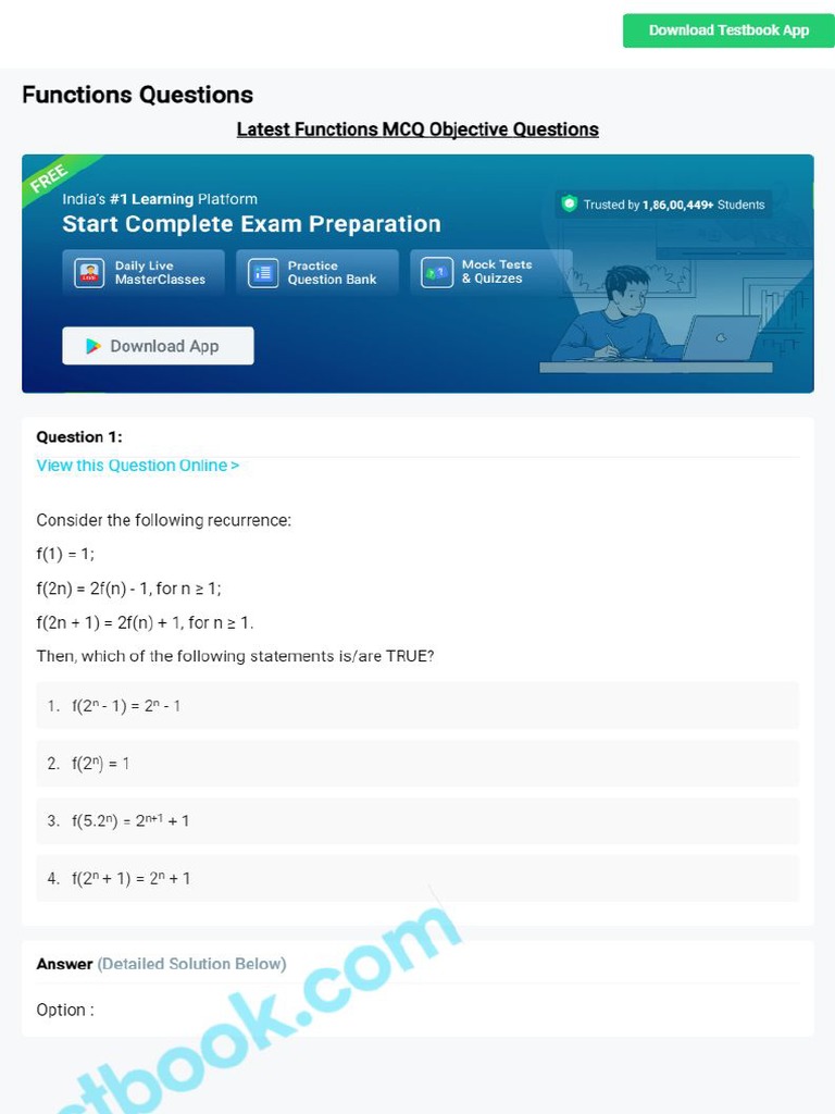 MCQ On Functions 5eea6a0a39140f30f369dc86 | PDF