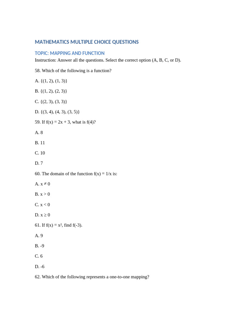 Mapping Function Multiple Choice Questions | PDF