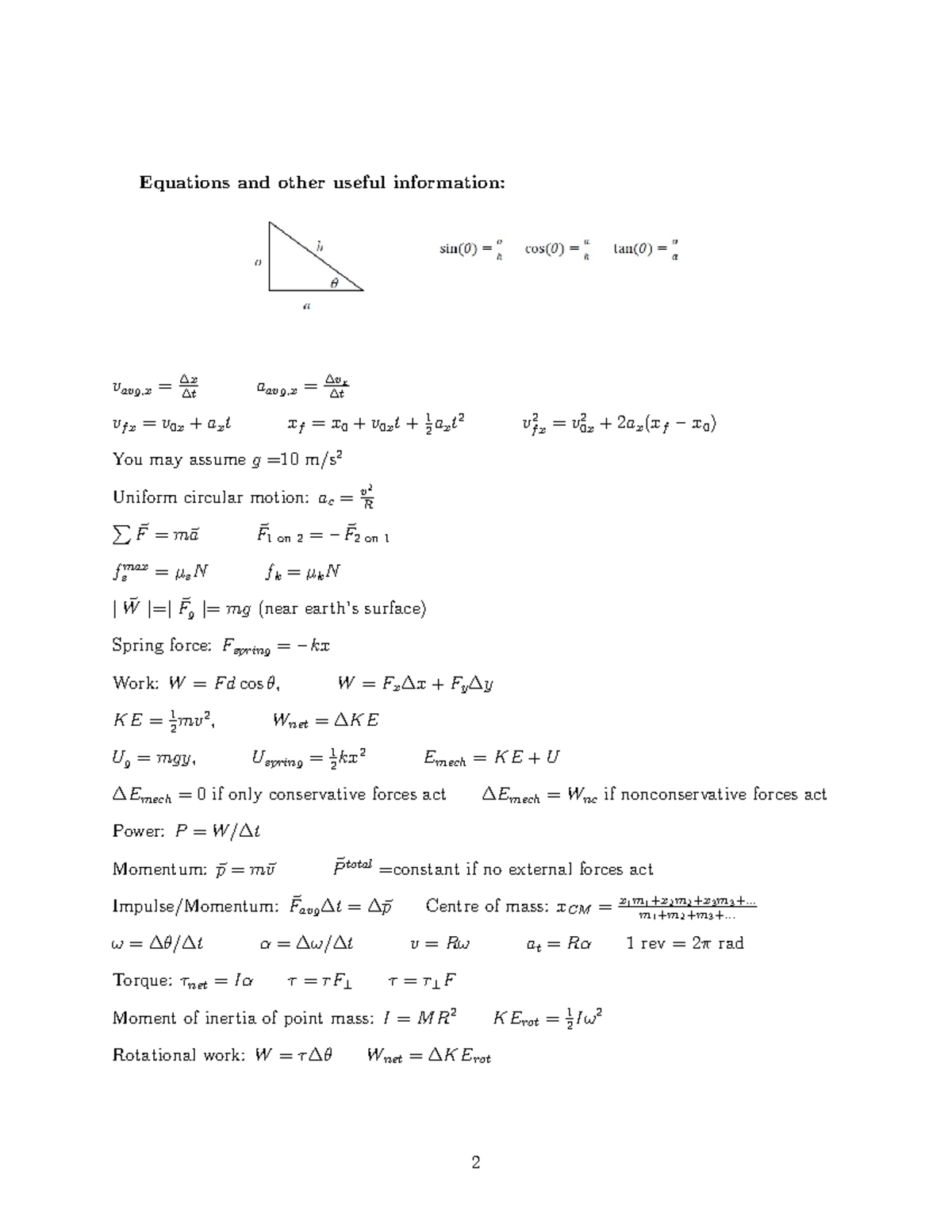 PHYS101 Practice Final Exam: Key Equations & Concepts - Studocu