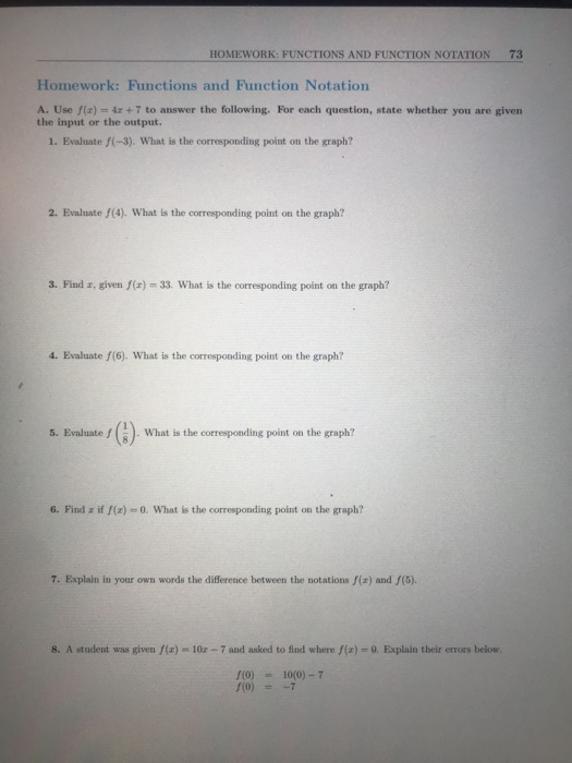 Solved HOMEWORK: FUNCTIONS AND FUNCTION NOTATION 73 | Chegg.com