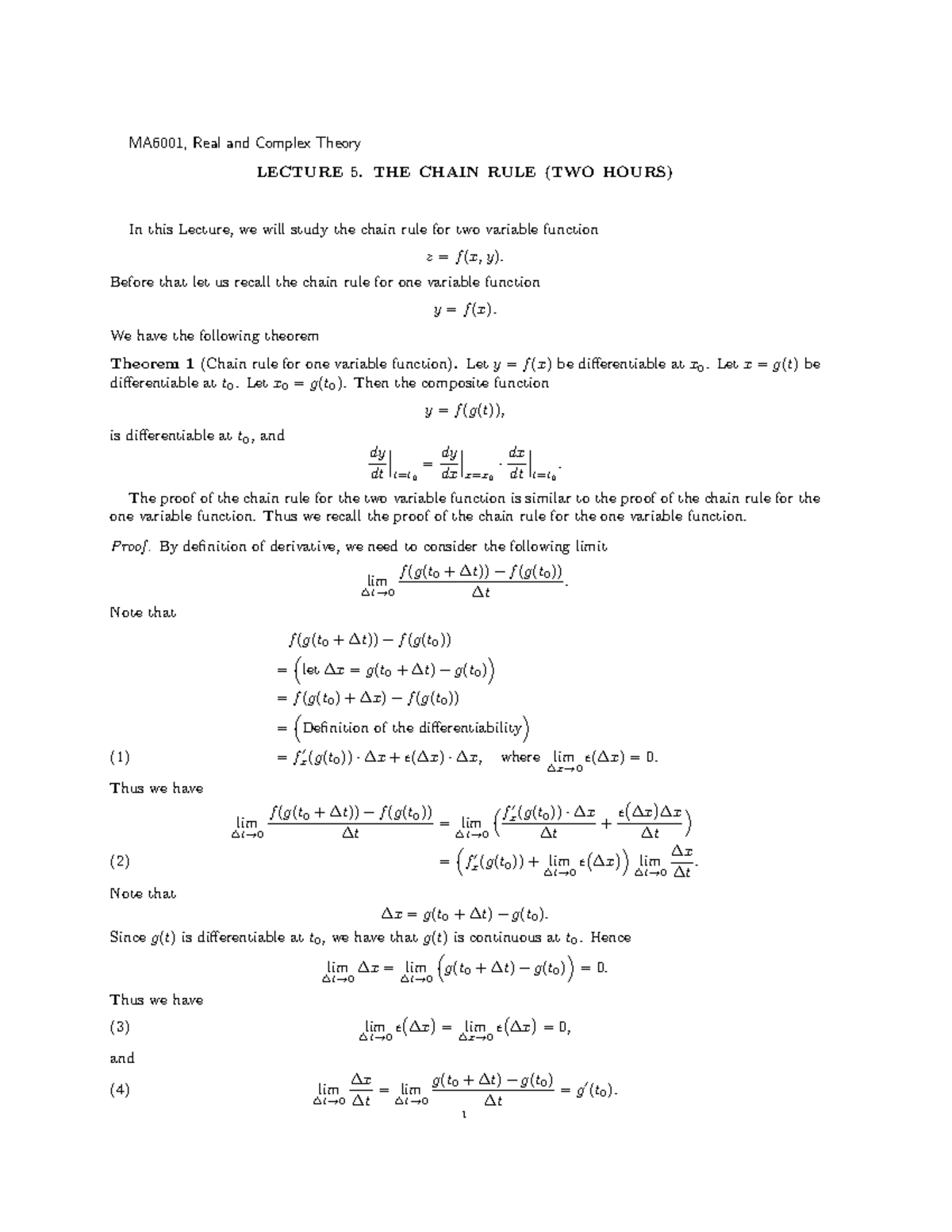 Lecture notes 5 - Real and Complex Function Theory - MA6001, Real and ...