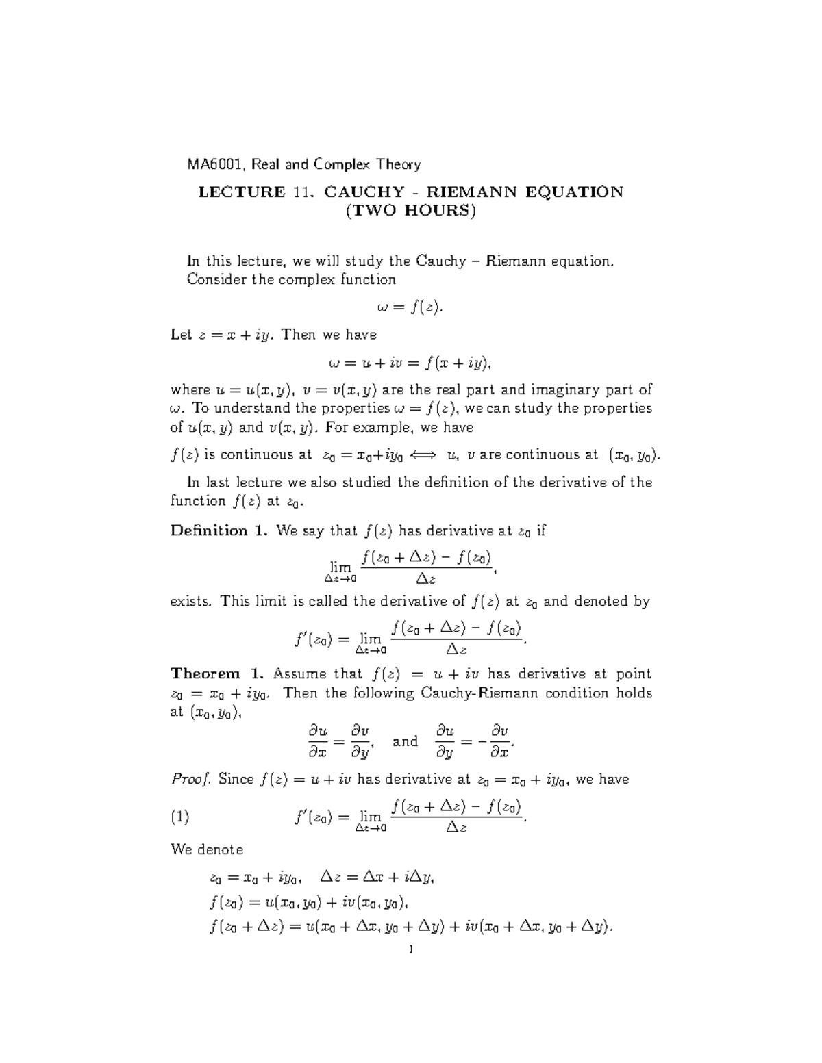 Lecture notes 11 - Real and Complex Function Theory - MA6001, Real and ...