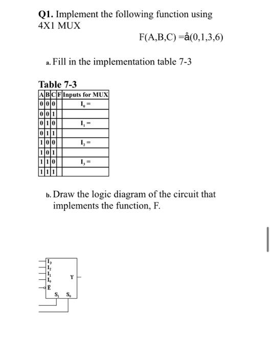 Solved Implement the following function using 8:1 MUX. And | Chegg.com
